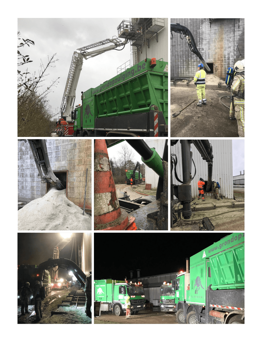 Leegzuigen silo's gevuld met natte houtsnippers.