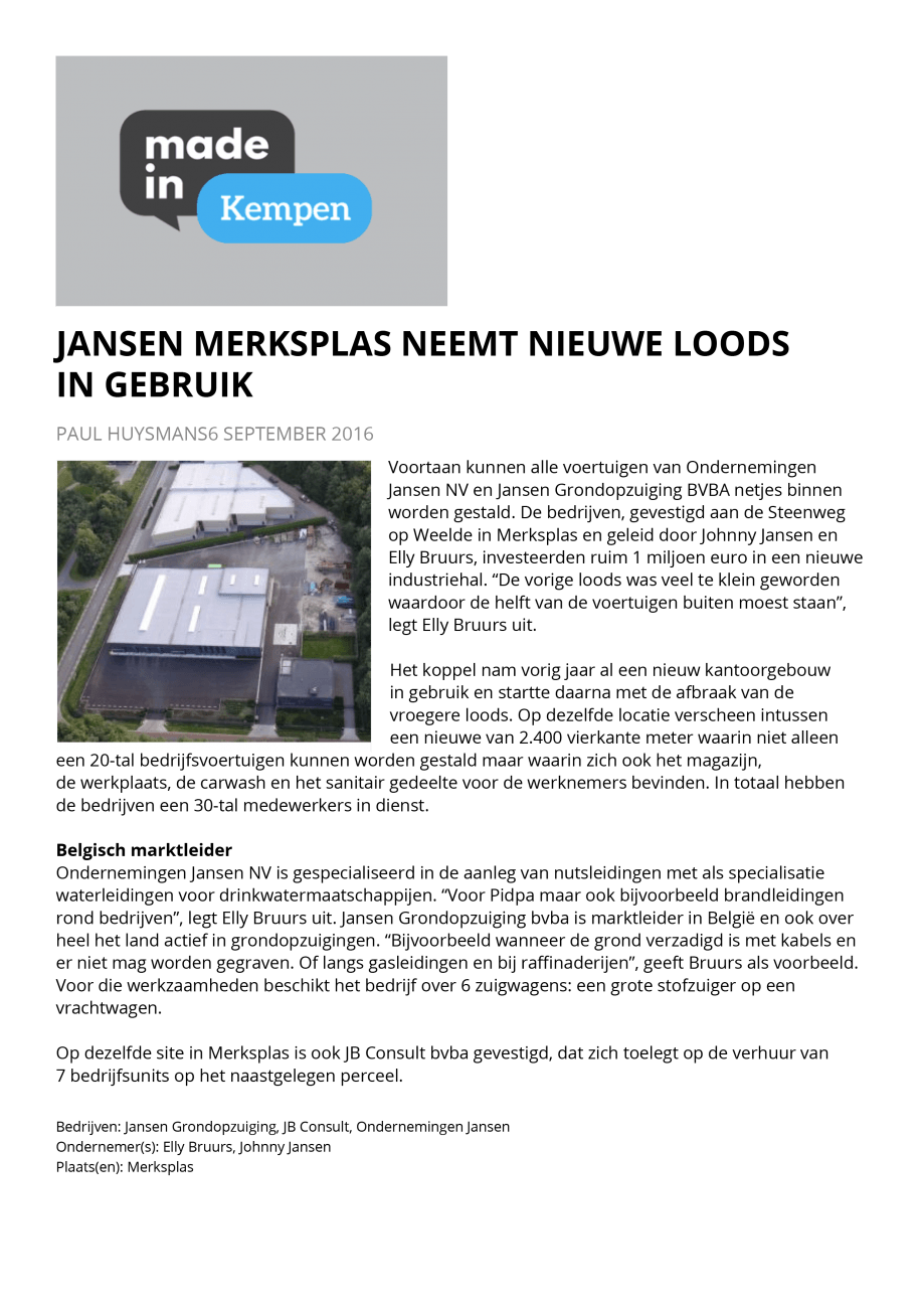 Ondernemingen JANSEN nv - JANSEN Grondopzuiging bv